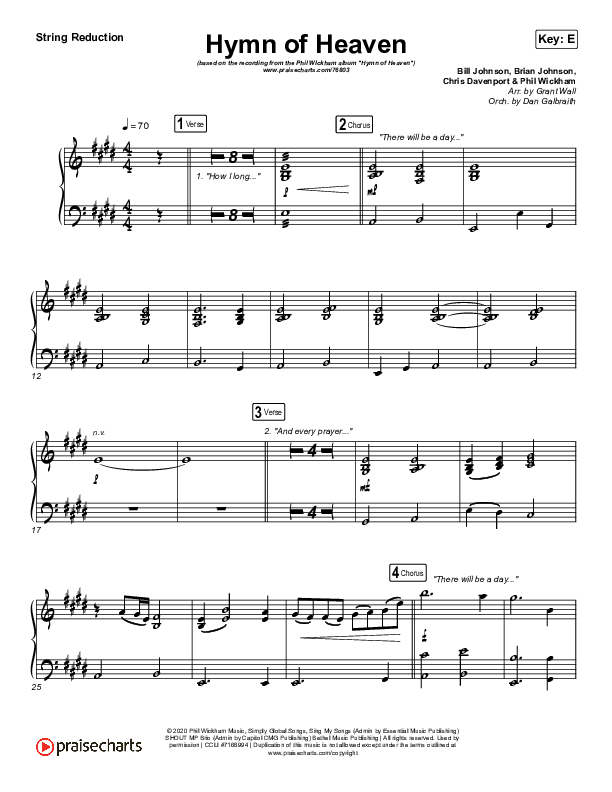 Download the Orchestration string parts for Hymn Of Heaven by Phil Wickham, from the album Hymn Of Heaven. This song was arranged by Grant Wall / Daniel Galbraith in the key of C, D, E, Eb.