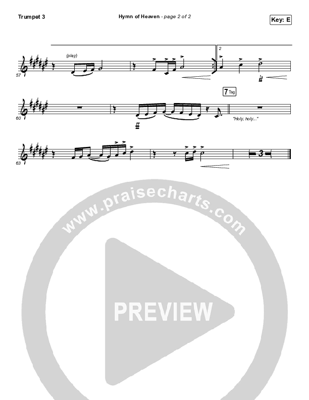 Download the Trumpet 3 sheet music for Hymn Of Heaven by Phil Wickham, from the album Hymn Of Heaven. This song was arranged by Grant Wall / Daniel Galbraith in the key of C, D, E, Eb.