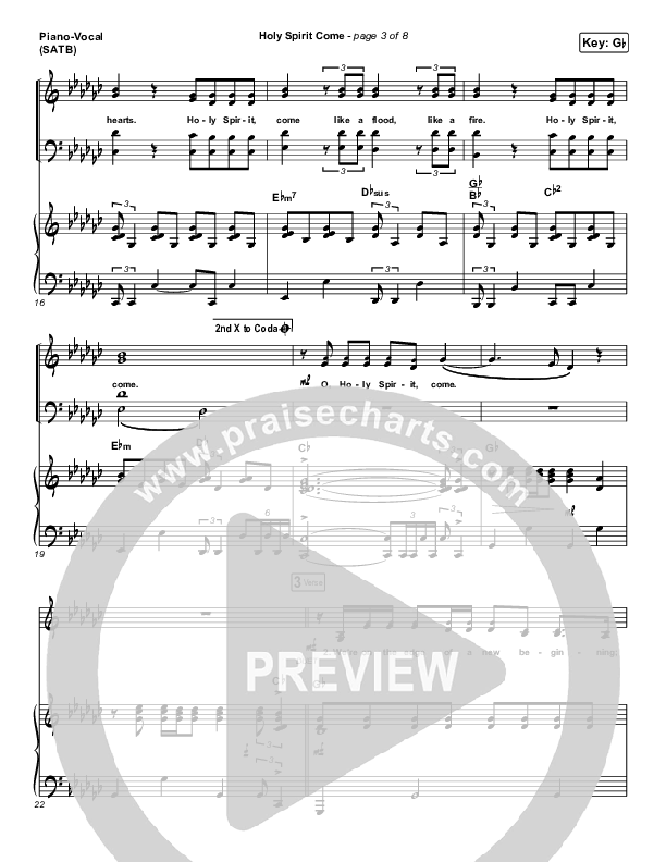 Download the sheet music for Holy Spirit Come by Patrick Mayberry, from the album Holy Spirit Come. This song was arranged by Grant Wall / Daniel Galbraith in the key of G, Gb.
