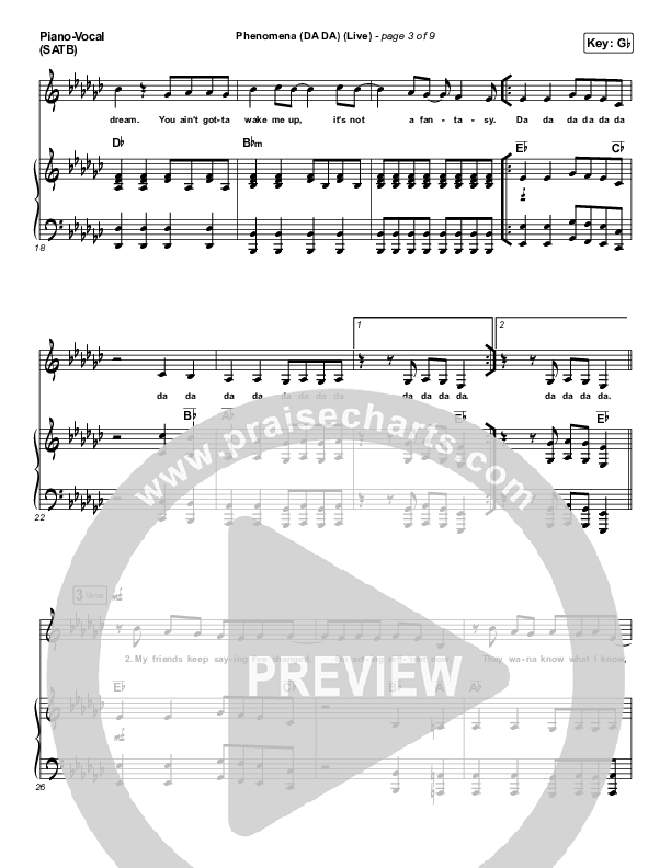 Download the sheet music for Phenomena (DA DA) (Live) by Hillsong Young & Free, from the album Out Here On A Friday Where It Began. This song was arranged by Erik Foster in the key of G, Gb.