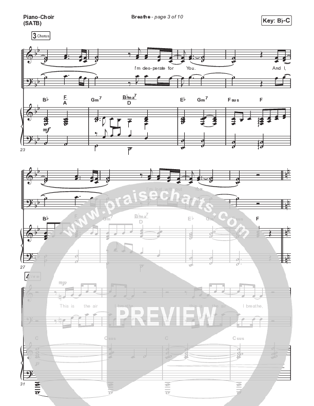 Download the PDF sheet music for Breathe (Live) by Michael W. Smith, from the album Worship Forever. This song was arranged by Mason Brown in the key of Ab, Bb.