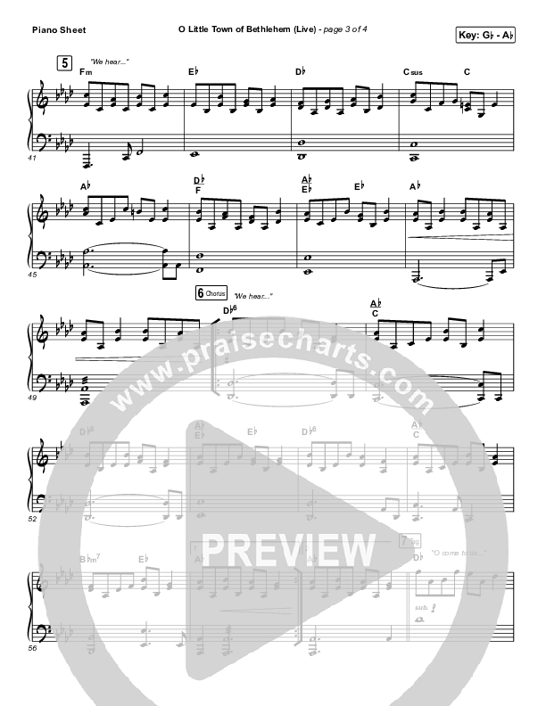 Download the piano sheet for O Little Town Of Bethlehem (Live) by Chris Tomlin, from the album Emmanuel: Christmas Songs Of Worship. This song was arranged by Grant Wall / Daniel Galbraith in the key of G, Gb.