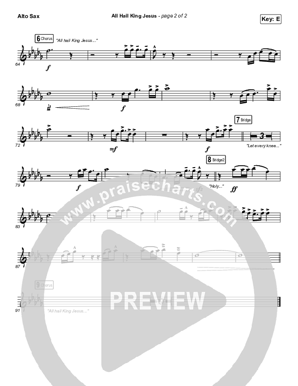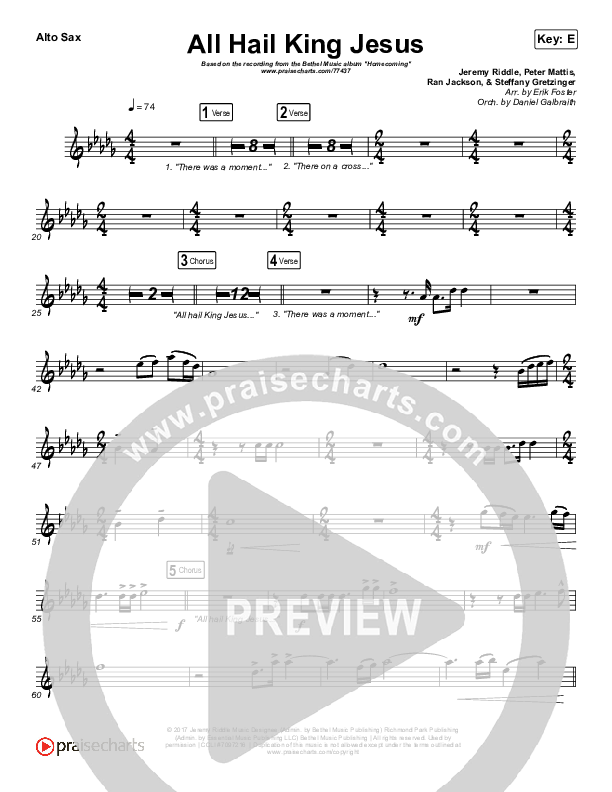 All Hail King Jesus (Live) Alto Sax Sheet Music PDF (Bethel Music / Bethany Wohrle)