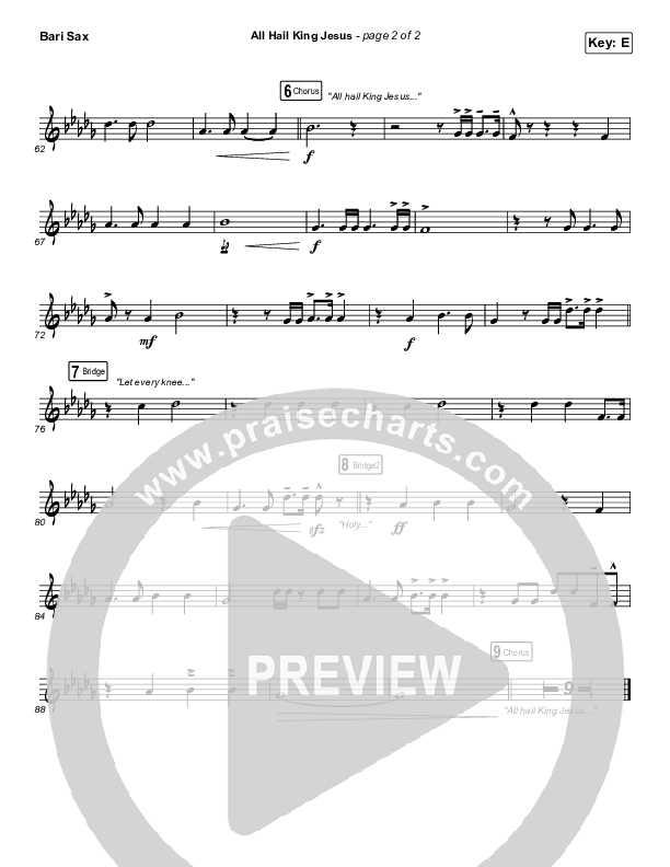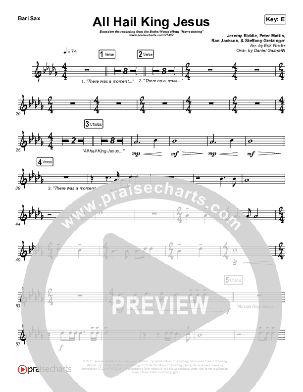All Hail King Jesus (Live) Bari Sax Sheet Music PDF (Bethel Music / Bethany Wohrle)