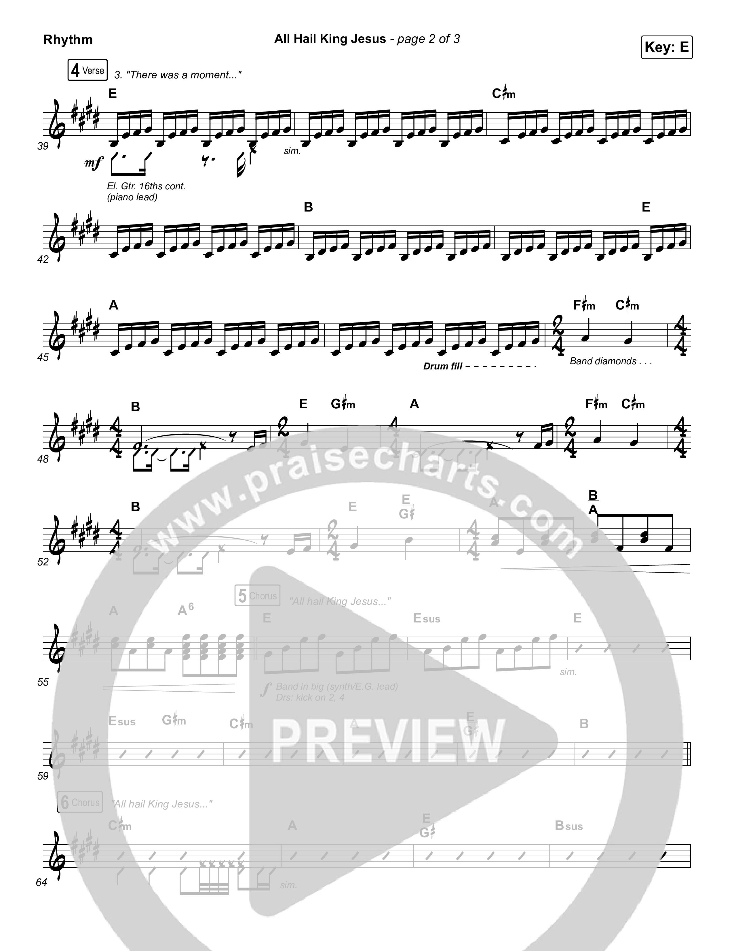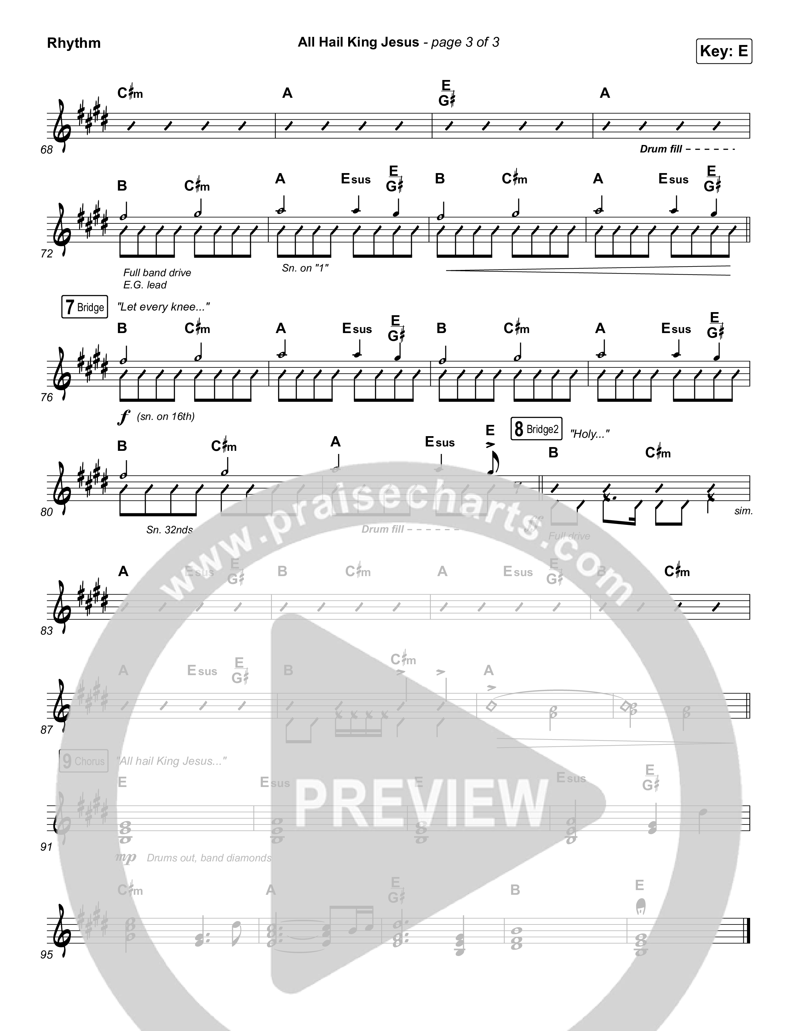 Download the Rhythm Chart for All Hail King Jesus (Live) by Bethel Music / Bethany Wohrle, from the album Homecoming. This song was arranged by Erik Foster / Daniel Galbraith in the key of B, C, D, E, Eb, F, G.