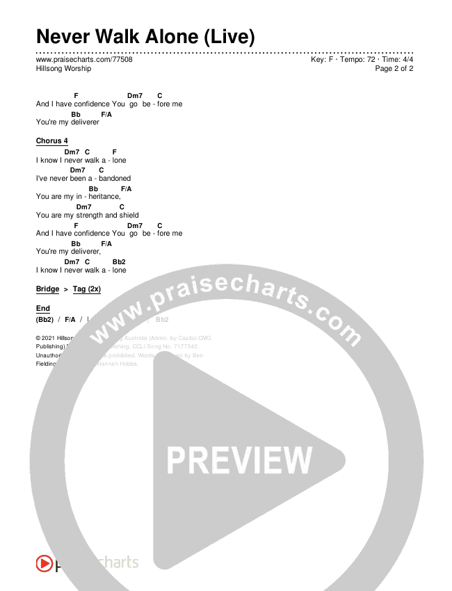 Never Walk Alone (Live) Chords PDF (Hillsong Worship)