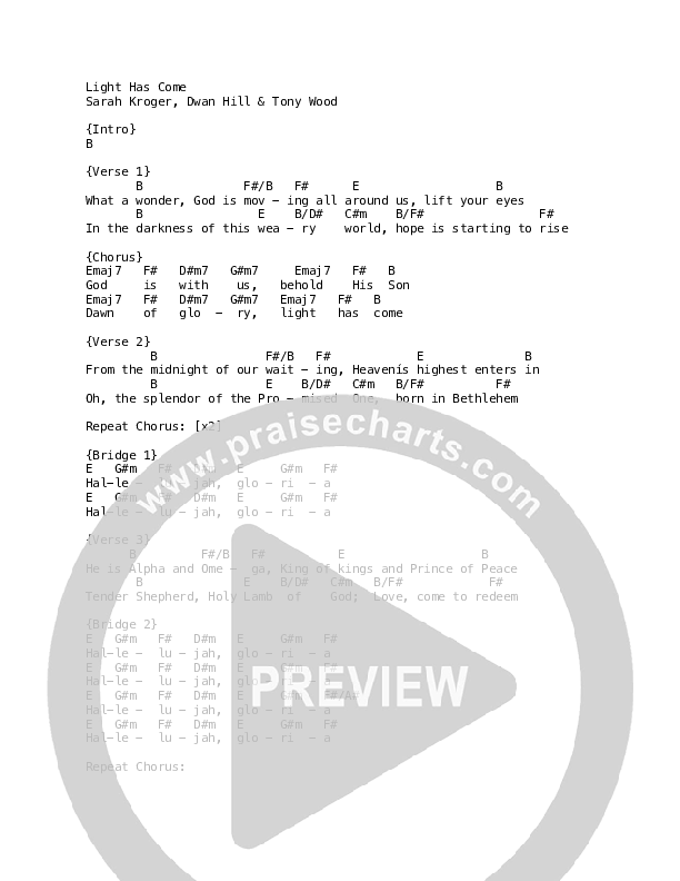 Download the PDF Chord Charts for Light Has Come by Sarah Kroger, from the album Light Has Come.