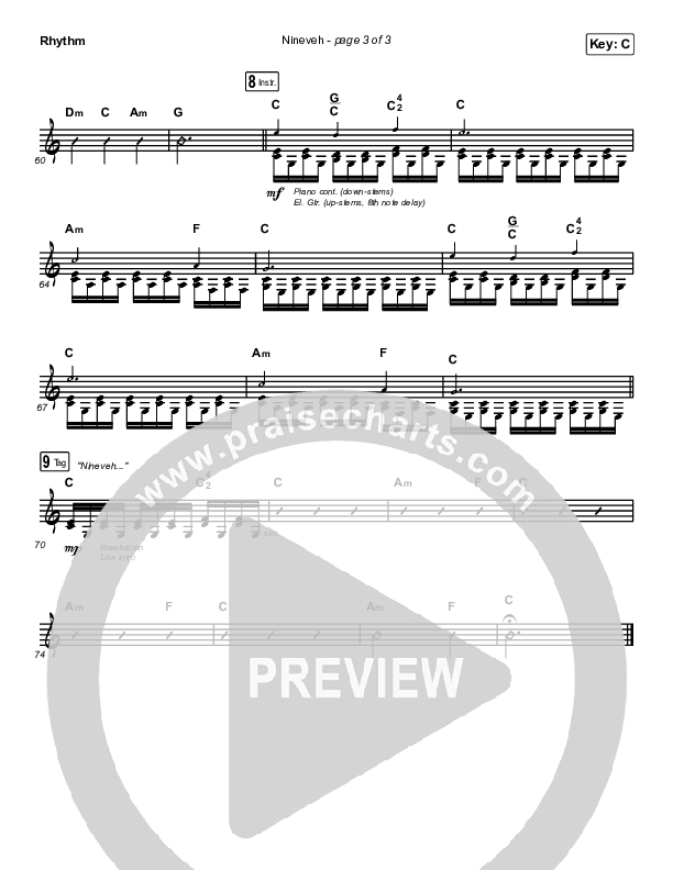 Download the Rhythm Chart for Nineveh by Brooke Ligertwood, from the album Nineveh. This song was arranged by Dustin Loehrs / Daniel Galbraith in the key of C, D.