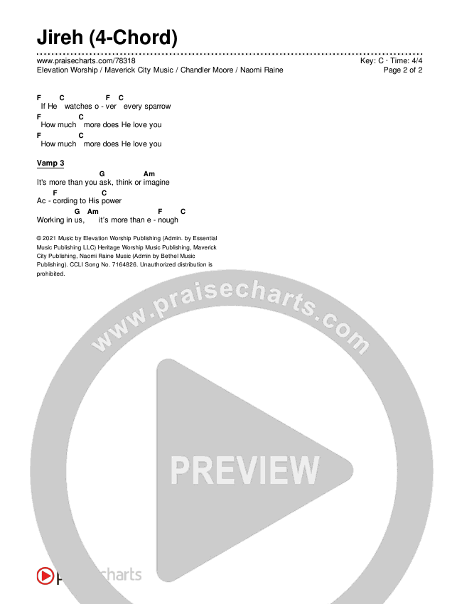 Jireh (4-Chord) Chords PDF (Elevation Worship / Maverick City Music / Chandler Moore / Naomi Raine)