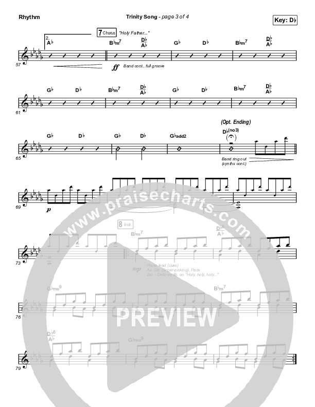 Download the Rhythm Chart for Trinity Song by The Worship Initiative, from the album Trinity Song. This song was arranged by Grant Wall / Daniel Galbraith in the key of C, Db.