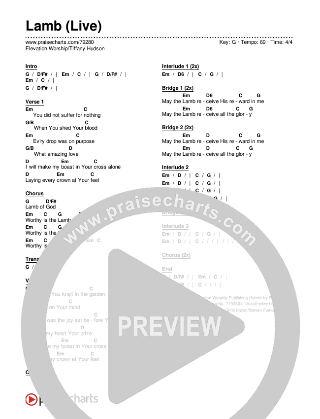 Lamb (Live) Chords PDF (Elevation Worship / Tiffany Hudson)