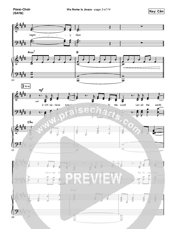 Download the PDF sheet music for His Name Is Jesus by Jeremy Riddle, from the album Live In The Prayer Room. This song was arranged by Daniel Galbraith in the key of C#m, Cm.