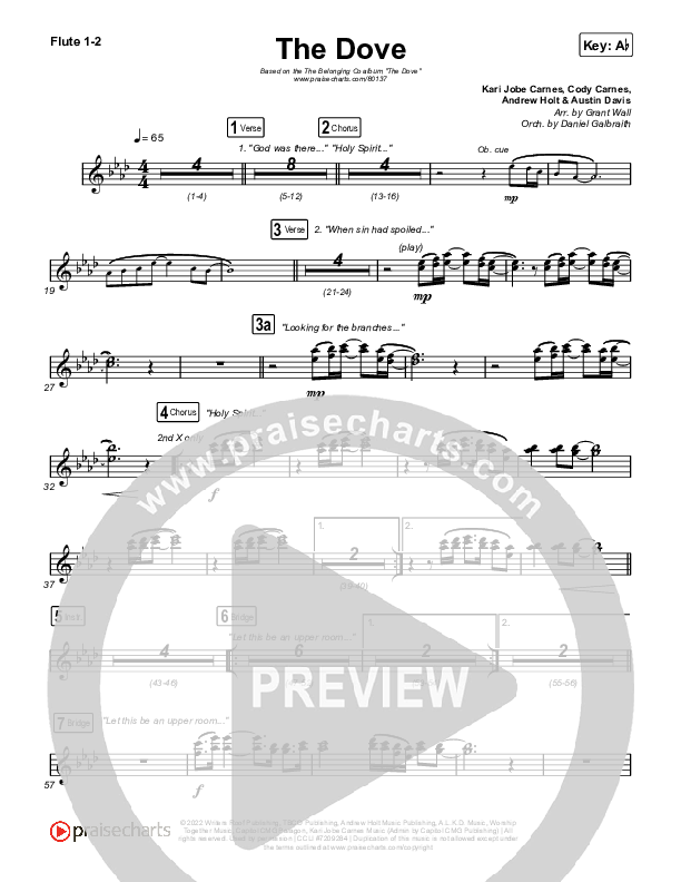 Download the Flute sheet music for The Dove by The Belonging Co / Kari Jobe, from the album The Dove. This song was arranged by Grant Wall / Daniel Galbraith in the key of Ab, G.