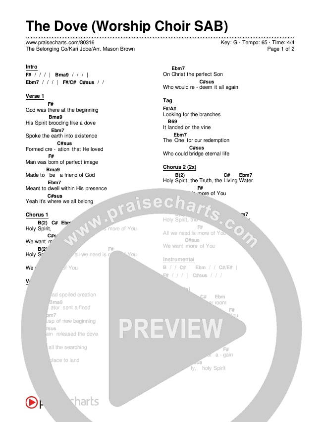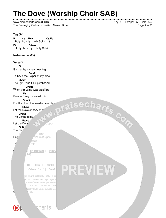 The Dove (Worship Choir SAB) Chords PDF (The Belonging Co / Kari Jobe / Arr. Mason Brown)