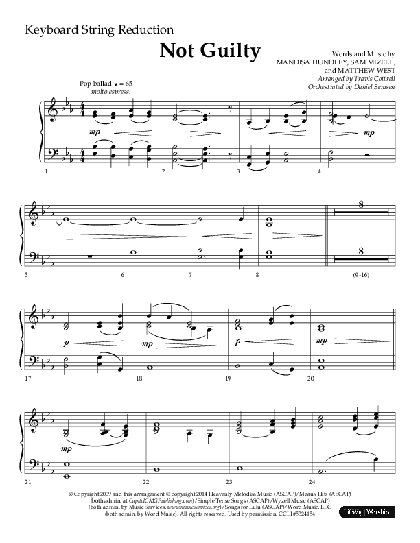 Not Guilty (Choral Anthem SATB) String Reduction Sheet Music PDF (Lifeway Choral / Arr. Travis Cottrell)
