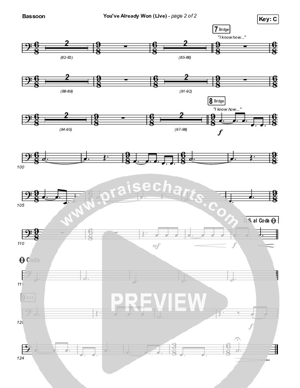 Download the Bassoon sheet music for You've Already Won (Live) by Shane & Shane, from the album You've Already Won (Live). This song was arranged by Daniel Galbraith in the key of Bb, C, D, Db.