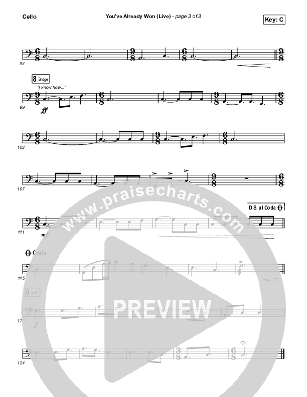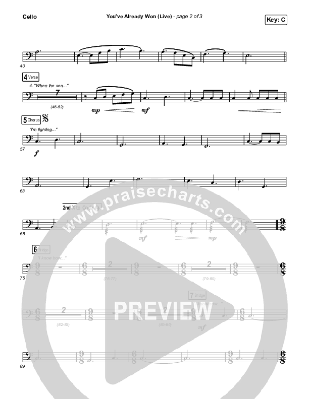 You've Already Won (Live) Cello Sheet Music PDF (Shane & Shane)