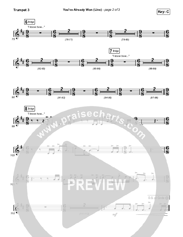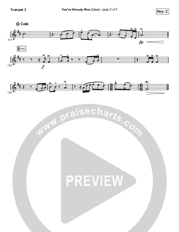 Download the Trumpet 3 sheet music for You've Already Won (Live) by Shane & Shane, from the album You've Already Won (Live). This song was arranged by Daniel Galbraith in the key of Bb, C, D, Db.