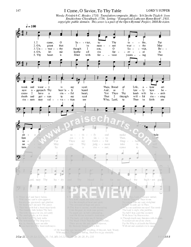 I Come O Savior To Thy Table Hymn Sheet (Traditional Hymn)