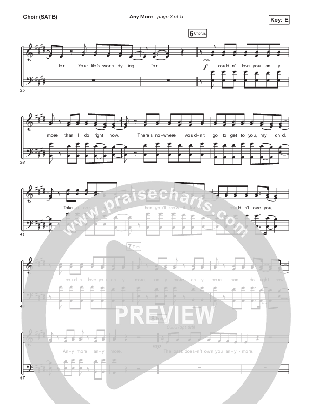 Download the Choir Sheet for Any More by CAIN, from the album Jesus Music. This song was arranged by Grant Wall in the key of E, Eb.