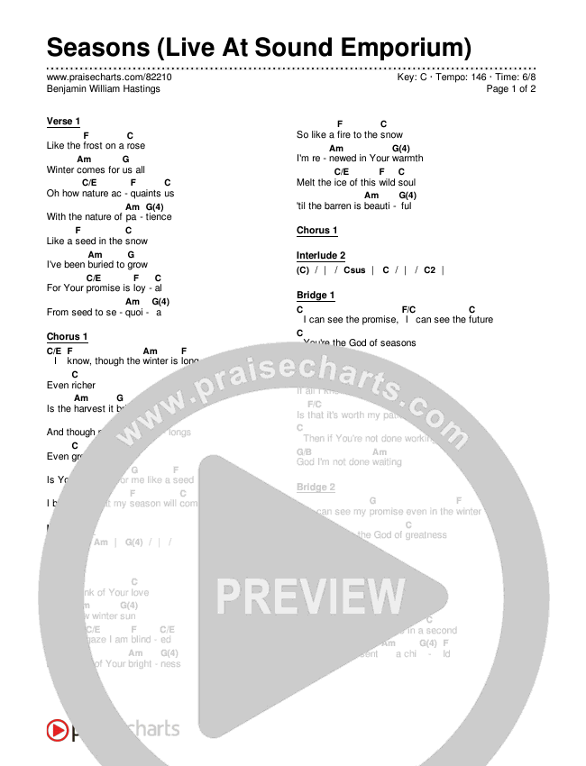 Download the PDF Chord Charts for Seasons (Live At Sound Emporium) by Benjamin William Hastings, from the album Songs You Maybe Didn't Know I Wrote And Some You Maybe Did.