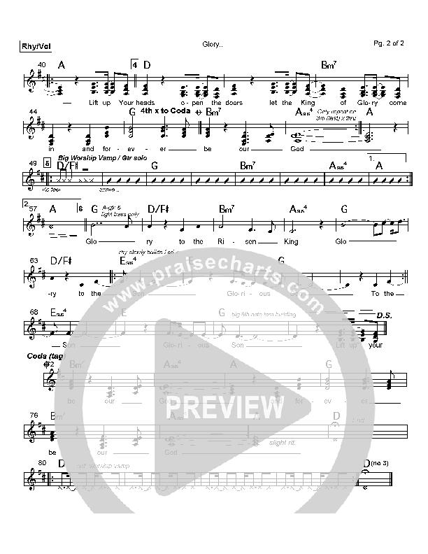 Download the Orchestration for Glory by Hillsong Worship, from the album Hope. This song was arranged by Mark Cole in the key of D, E.