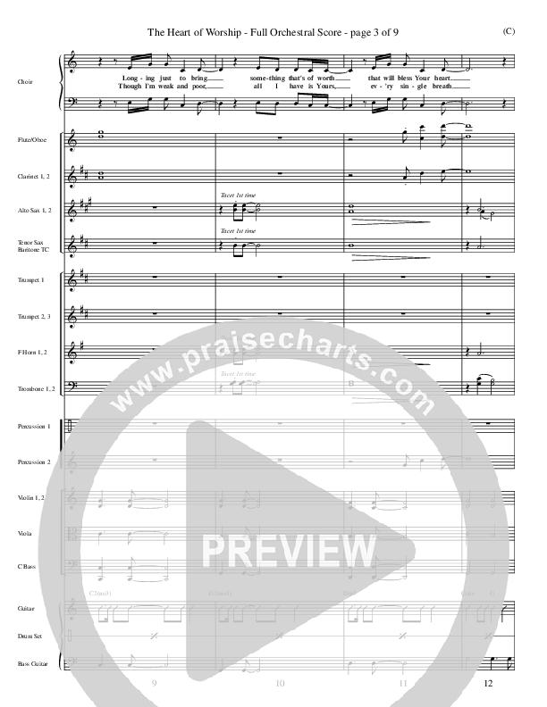 Download the Orchestration for The Heart Of Worship by Matt Redman, from the album Word Music Now. This song was arranged by Tom Payne in the key of C, D.