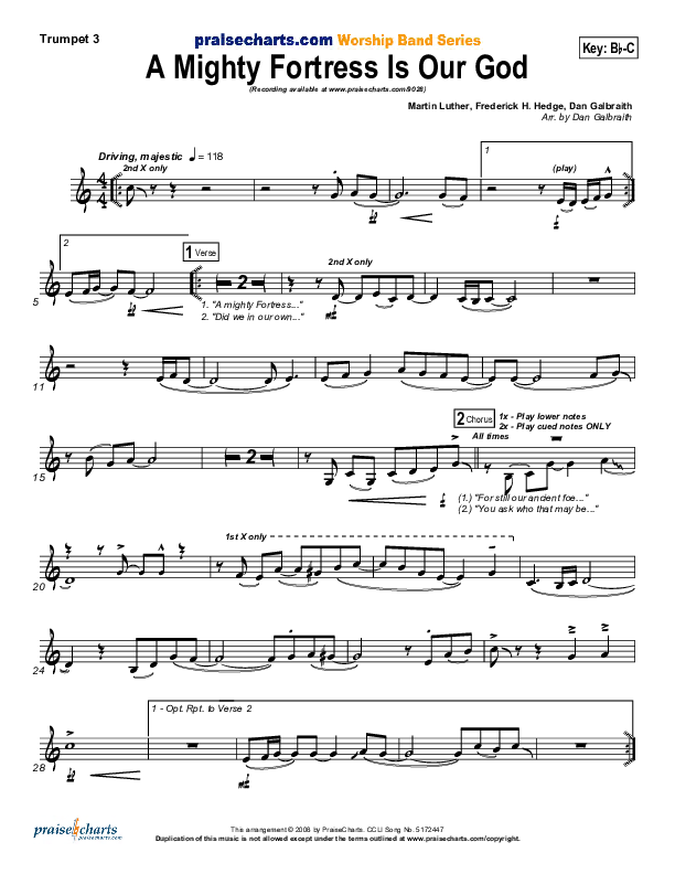 A Mighty Fortress Is Our God Trumpet Sheet Music PDF (PraiseCharts Band / Arr. Daniel Galbraith)