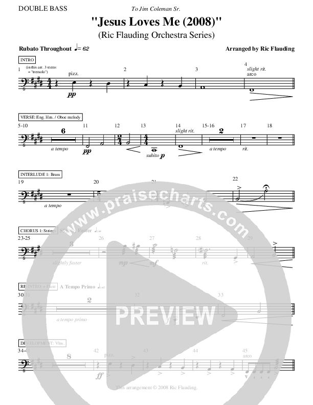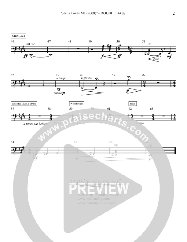 Jesus Loves Me (Instrumental) String Bass Sheet Music PDF (Ric Flauding)