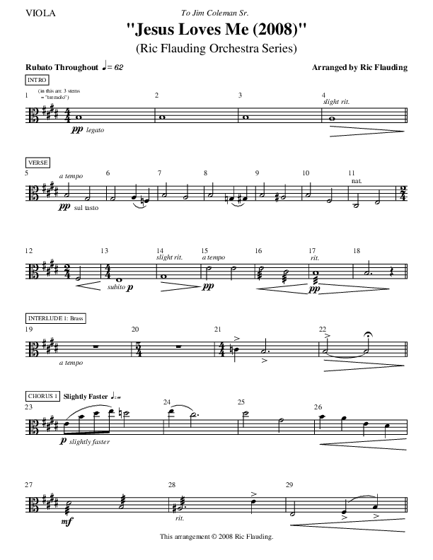 Download the Viola sheet music for Jesus Loves Me (Instrumental) by Ric Flauding, from the album Soundtrack For A Savior.