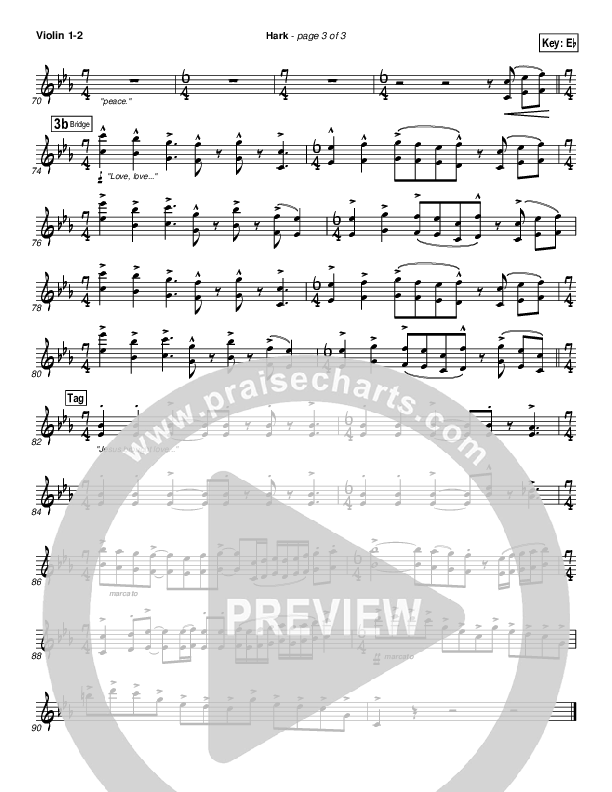 Download the Violin sheet music for Hark by Israel Houghton, from the album A Timeless Christmas. This song was arranged by John Wasson in the key of C, Eb, F.
