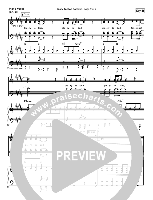 Download the sheet music for Glory To God Forever by FEE Band, from the album Hope Rising. This song was arranged by Joel Mott / John Carlson in the key of B.