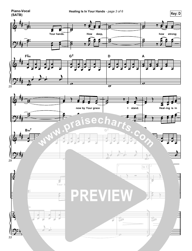 Download the sheet music for Healing Is In Your Hands by Christy Nockels / Passion, from the album Passion: Awakening. This song was arranged by Daniel Galbraith in the key of C, D.
