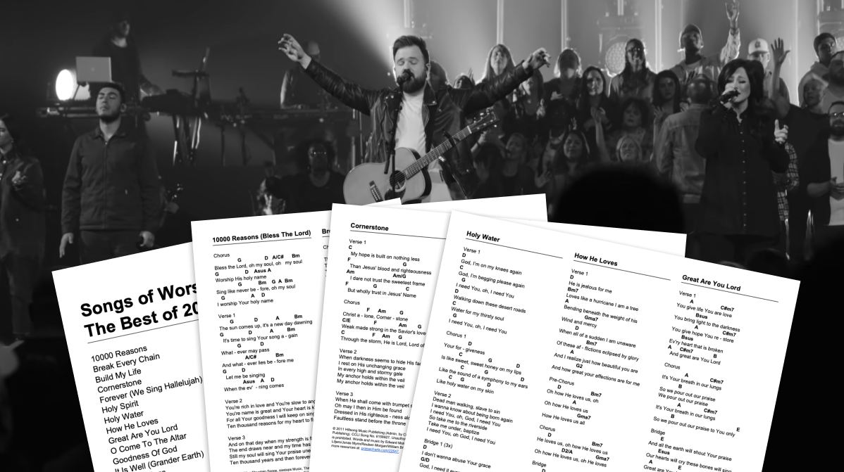 The concept for this series began many months ago, long before social isolation and online worship was the new norm. The project sat on the back burner as we were consumed with producing choral and orchestral arrangements. Now, for a season, choirs and orchestras must make way for the precedence of another form of worship -- more intimate and private, yet still shared as a global community. Songs Of Worship is a series of song sheets featuring your favorite worship titles in all kinds of genres, arranged in singable keys that are easy to play on the guitar or piano. Most collections have 24 songs that you should be able to print on six pages, back to back. Feel free to mix and match the pages and create custom song sheets for yourself or your small group.