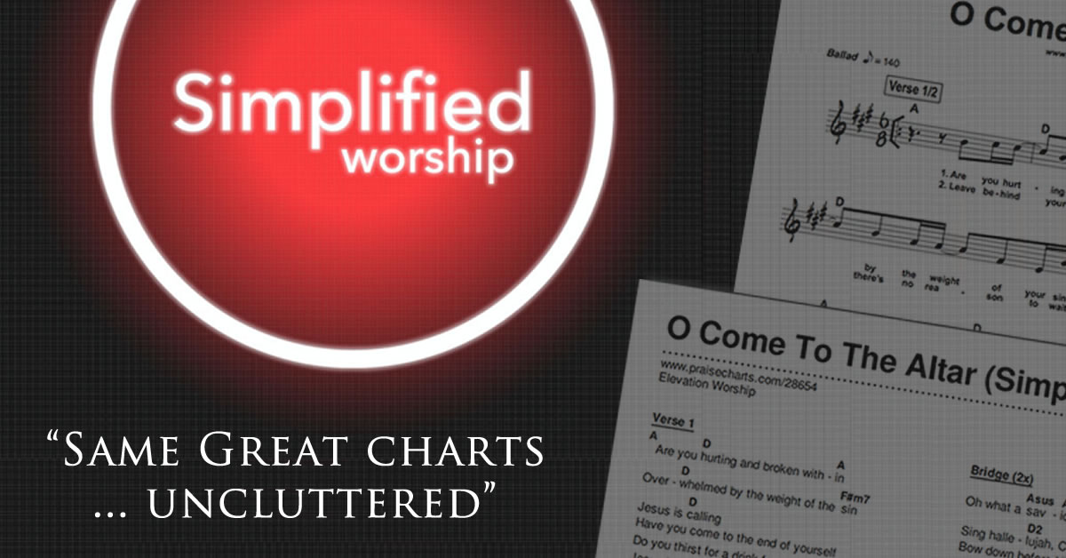 - Small Group Worship - the last thing you want to worry about in a small group setting is pages and pages of music. Most small group worship leaders want the basic chords and the basic lyrics laid out on a single page. You don't need to sound like the album. You just need to reference the essential melody and chords of the song. The rest will come alive in your small group. Plus, your friends will appreciate you taking the song down a few keys, as they sing while settled in on the couch! Most of the simplified worship arrangements are available in all keys, so that you can pick the sweet spot.