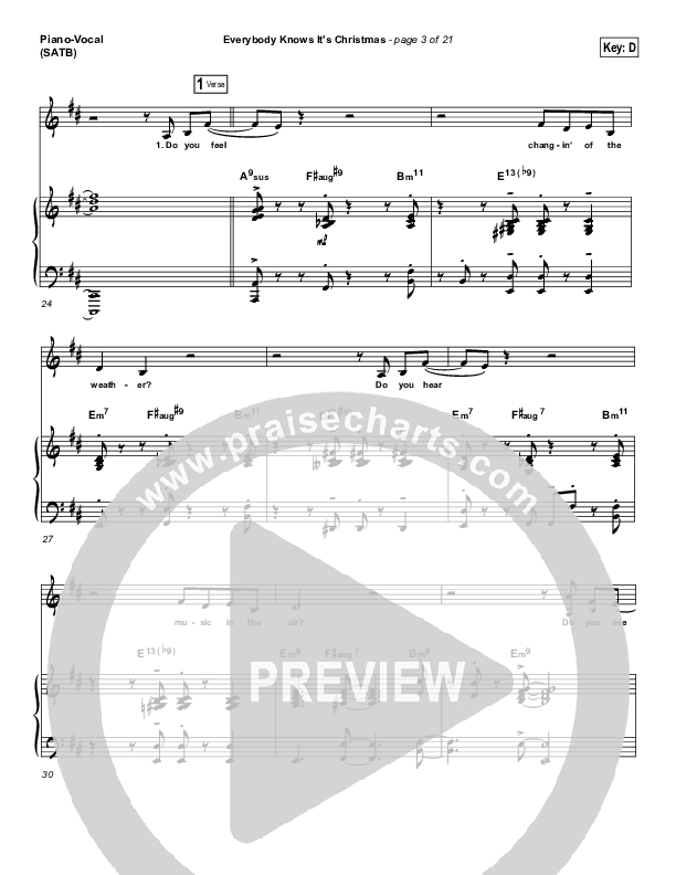 Download the sheet music for Everybody Knows by Israel Houghton, from the album A Timeless Christmas. This song was arranged by Jeff Moore / Jared Haschek in the key of D, Eb.