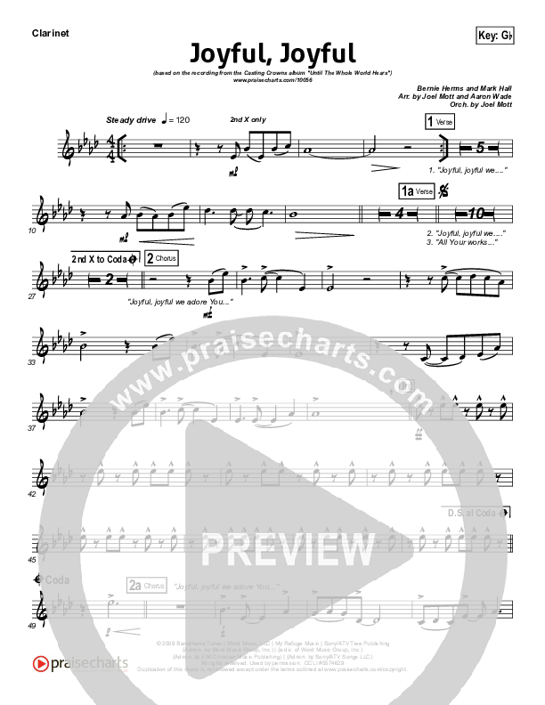 Download the Orchestration for Joyful Joyful by Casting Crowns, from the album Until The Whole World Hears. This song was arranged by Joel Mott / Aaron Wade in the key of F, Gb.