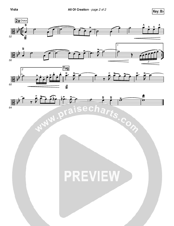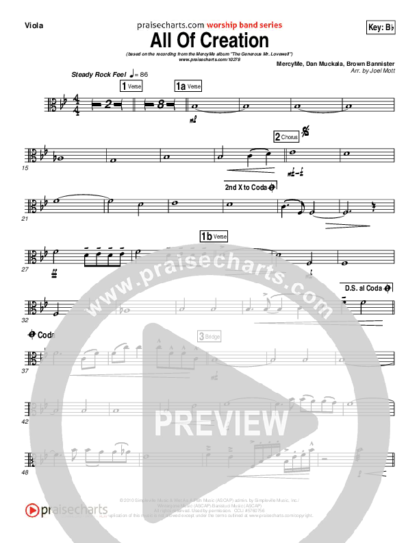 Download the Viola sheet music for All Of Creation by MercyMe, from the album The Generous Mr. Lovewell. This song was arranged by Joel Mott in the key of Bb, G.