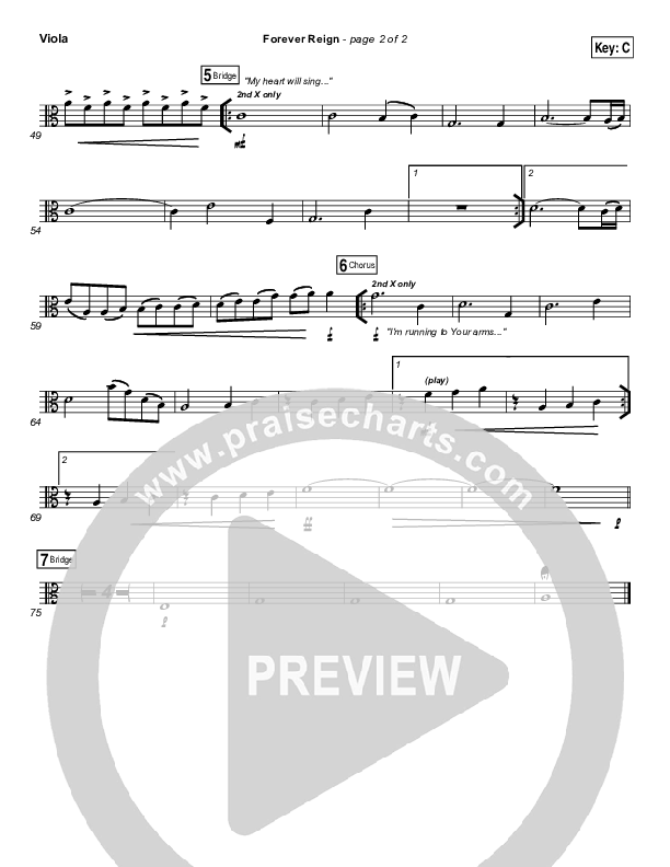 Download the Viola sheet music for Forever Reign by Hillsong Worship, from the album A Beautiful Exchange. This song was arranged by Daniel Galbraith in the key of A, Ab, B, Bb, C, G.