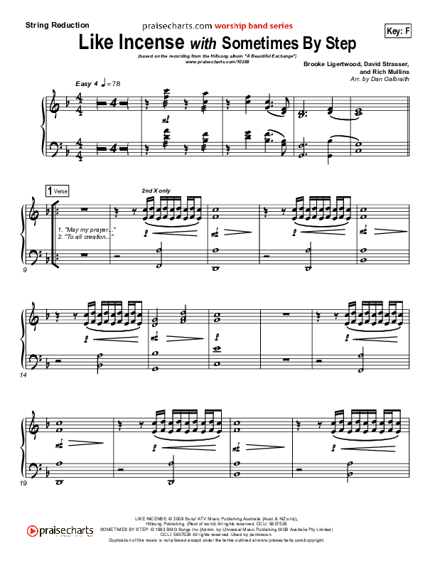 Download the Orchestration for Like Incense by Hillsong Worship, from the album A Beautiful Exchange. This song was arranged by Daniel Galbraith in the key of F, G.