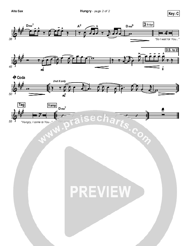 Download the AltoSax sheet music for Hungry by Kathryn Scott, from the album Hungry. This song was arranged by Daniel Galbraith in the key of C, D.