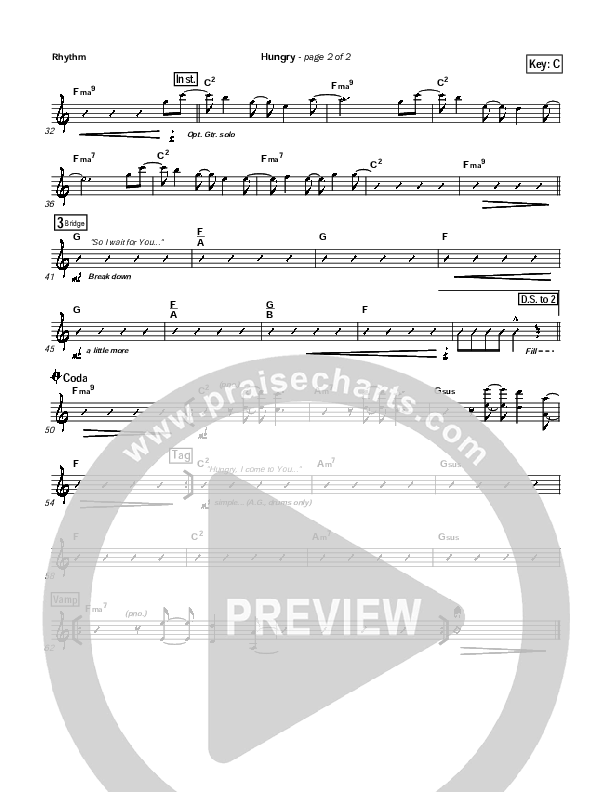 Download the Rhythm Chart for Hungry by Kathryn Scott, from the album Hungry. This song was arranged by Daniel Galbraith in the key of C, D.