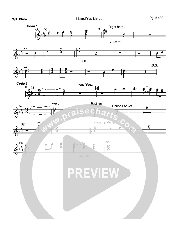 Download the Flute sheet music for I Need You More by Lindell Cooley, from the album Revival At Brownsville. This song was arranged by Mark Cole in the key of E, Eb.