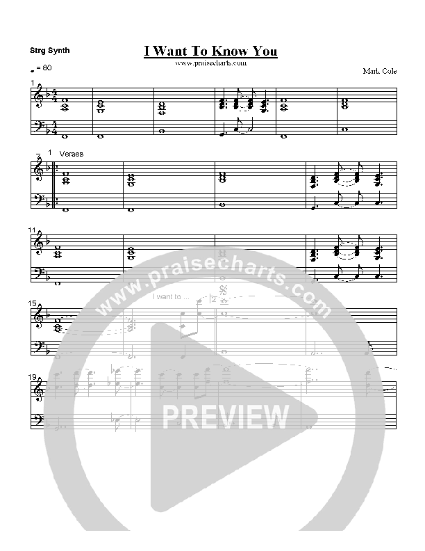 Download the Orchestration for I Want To Know You by Mark Cole, from the album Move In This City. This song was arranged by Mark Cole in the key of F.
