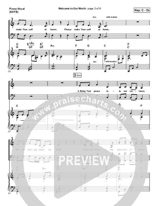 Download the sheet music for Welcome To Our World by Michael W. Smith, from the album Christmastime. This song was arranged by Jared Haschek in the key of C, D.