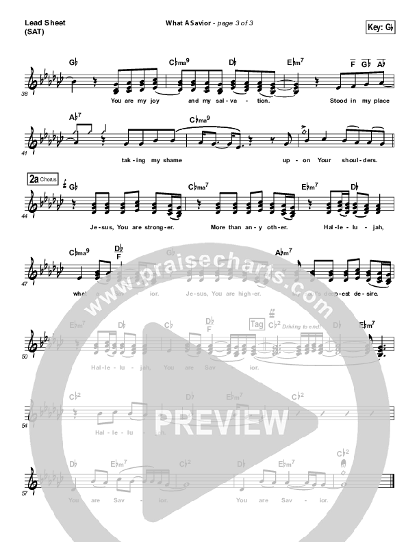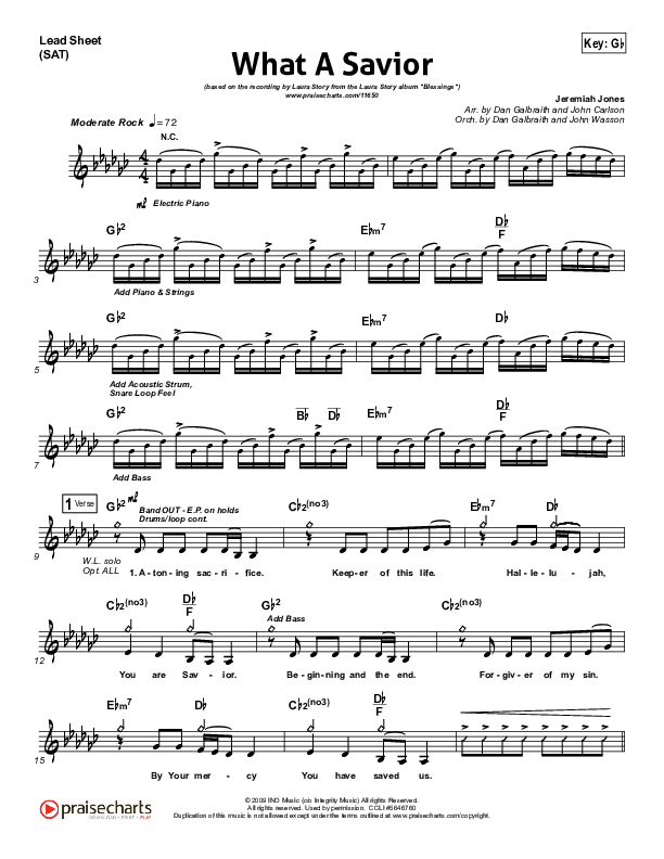 Download the sheet music for What A Savior by Laura Story, from the album iWorship: DVD T. This song was arranged by Daniel Galbraith / John Carlson in the key of G, Gb.