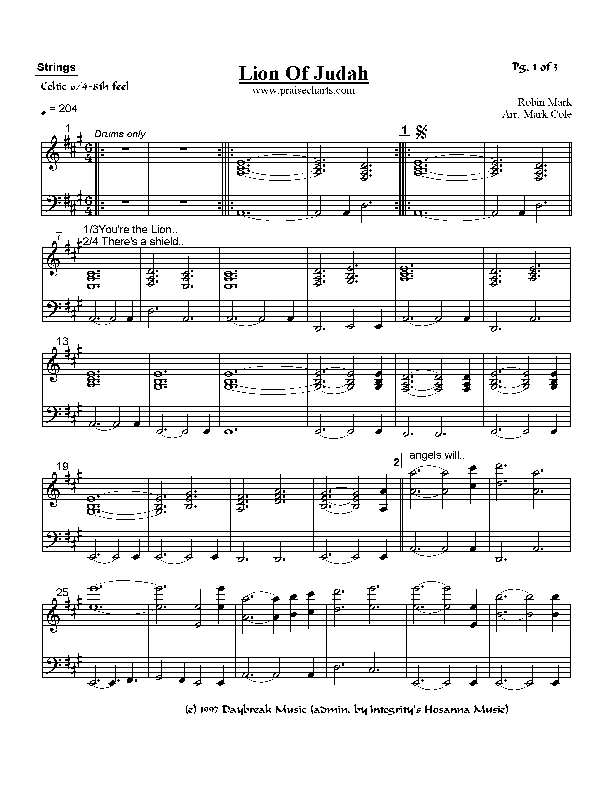 Download the Orchestration for Lion Of Judah by Robin Mark, from the album Revival In Belfast. This song was arranged by Mark Cole in the key of A, Bb.