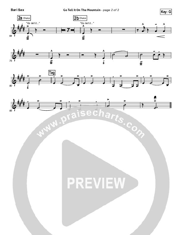 Go Tell It On The Mountain Bari Sax Sheet Music PDF (Tenth Avenue North)