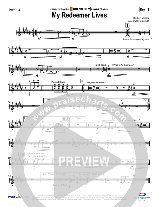 Download the Orchestration brass parts for My Redeemer Lives by Hillsong Worship, from the album By Your Side. This song was arranged by Daniel Galbraith in the key of E, F.
