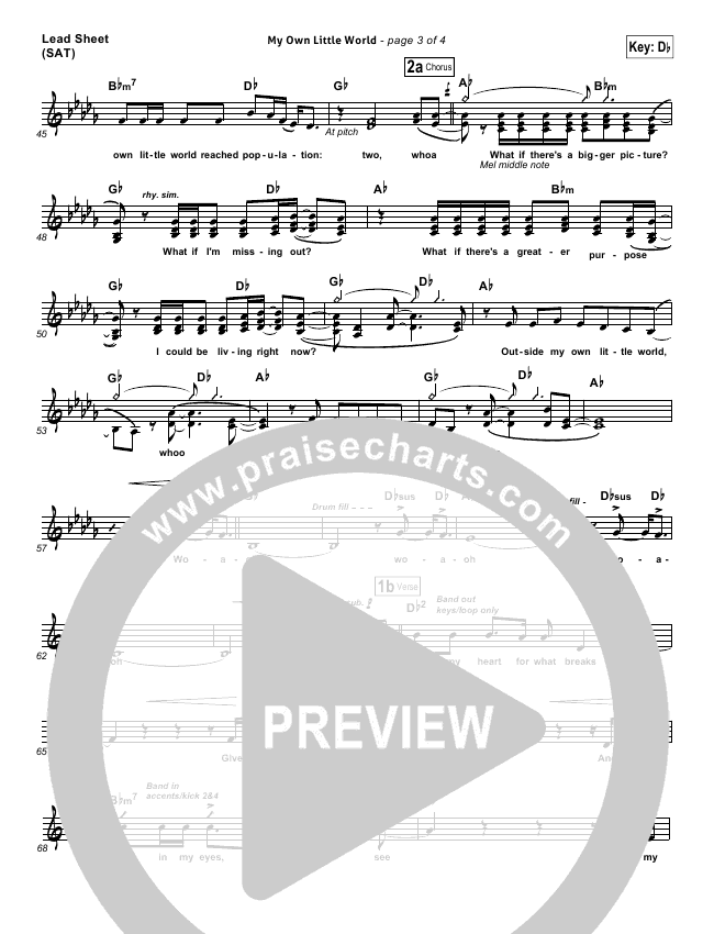 Download the Orchestration for My Own Little World by Matthew West, from the album The Story Of Your Life. This song was arranged by Joel Mott / Aaron Wade in the key of C, Db.